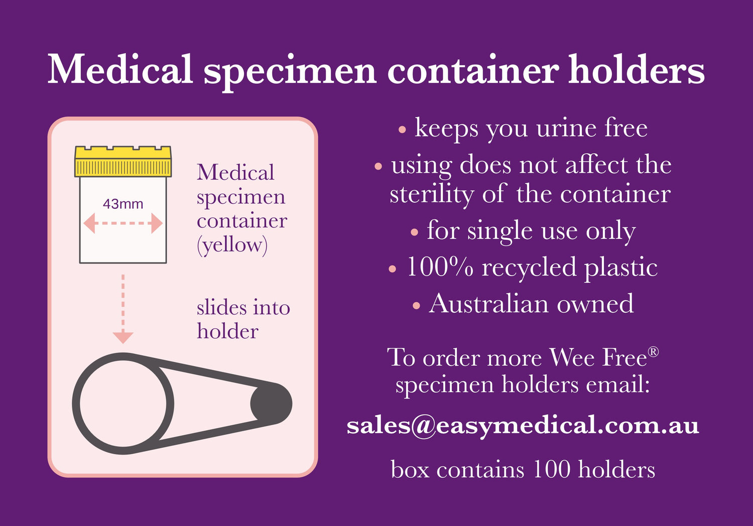 The Wee Free® medical specimen container holder is designed to make urine sample collection more hygienic. They provide a hands-free experience, improving comfort.